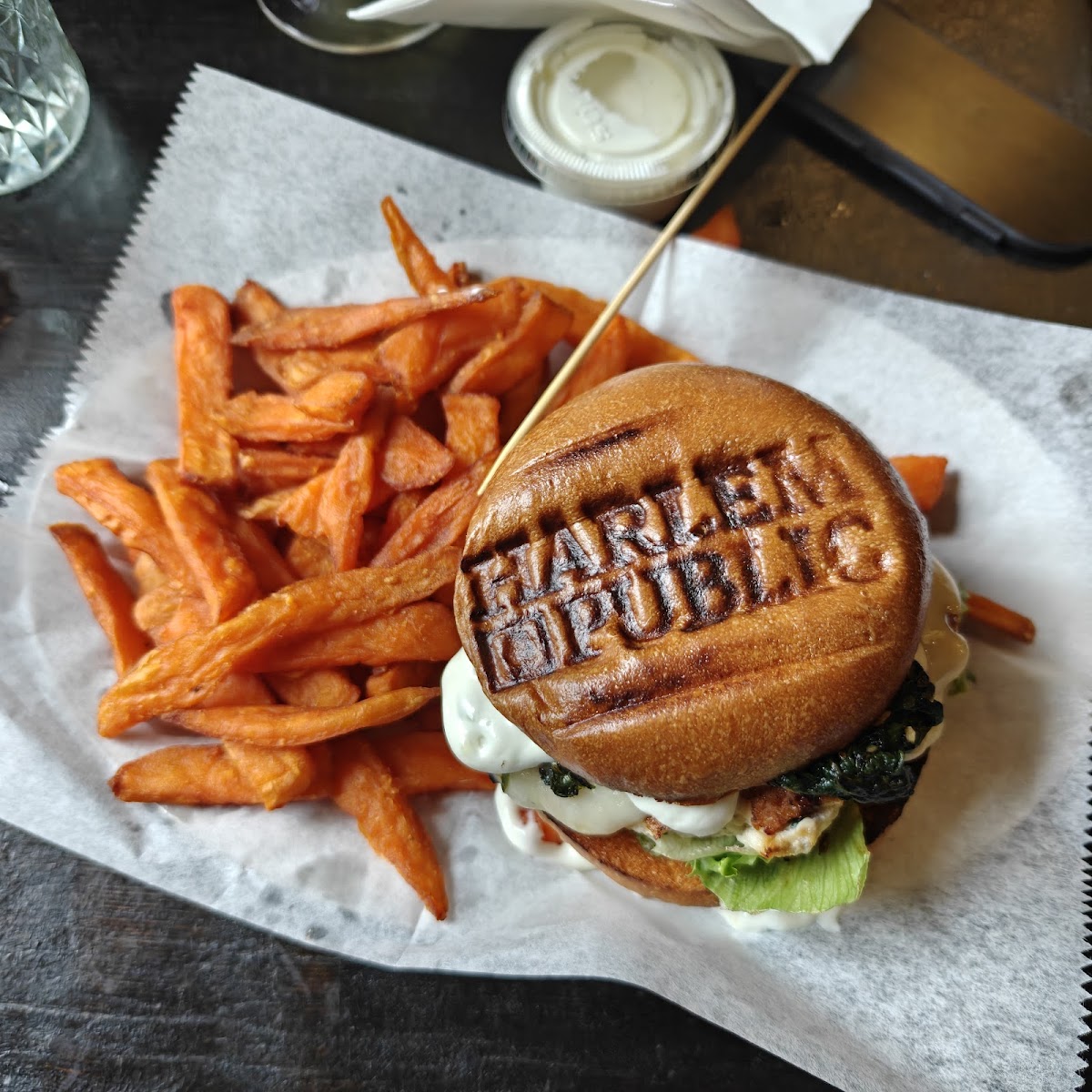 Was on the way out the city. Decided to stop and grab some food a little later in the night around 11 pm stumbled on Harlem Public. Great atmosphere, great music, great service. Grabbed some wings and fries. Awesome wings, good size wings, crispy, really good sauce. Only let down was the fries bunch of little pieces, might have been because we were there a little late. But overall great experience. Will visit again.